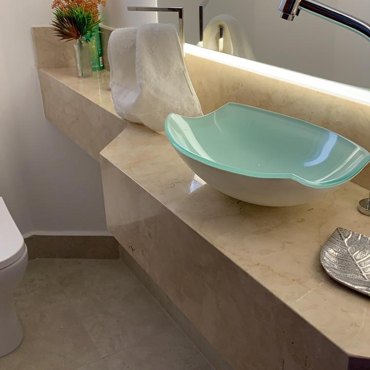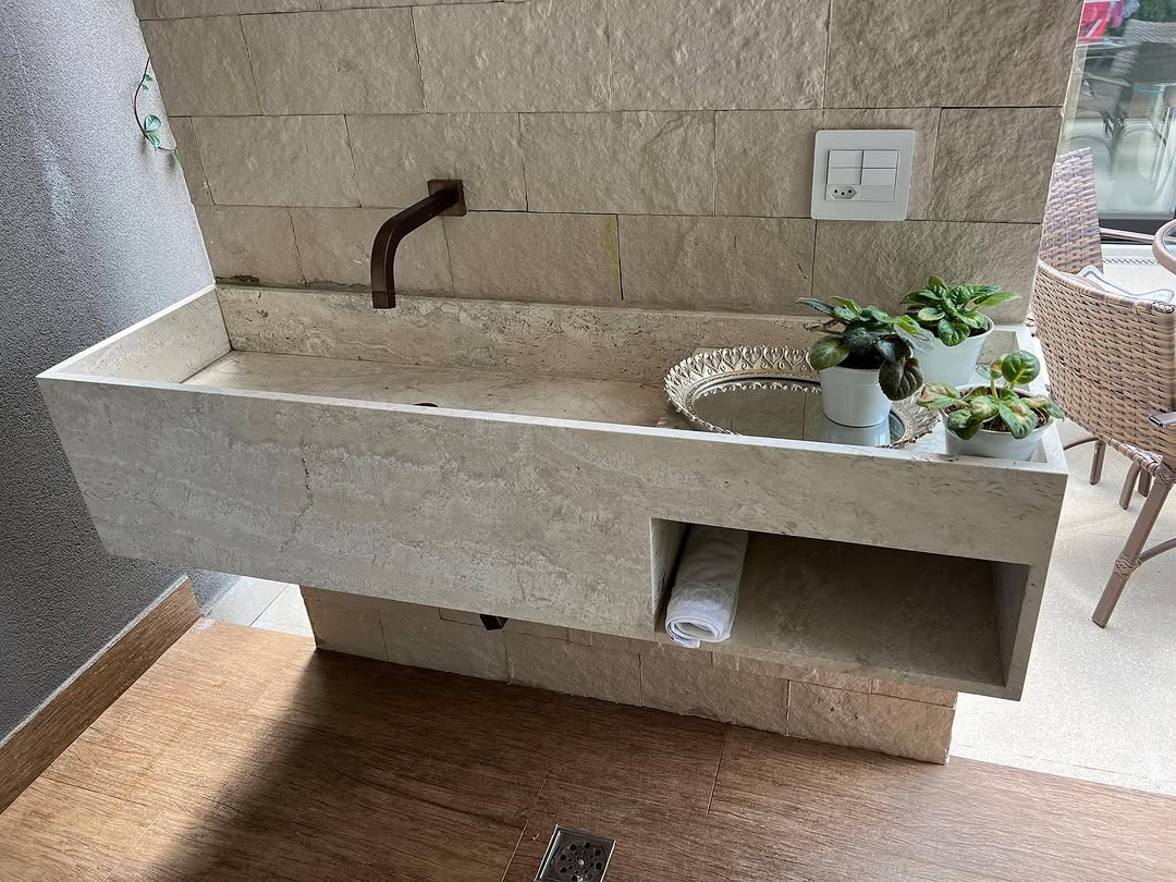 Produção artesanal de pias e cubas em pedra natural para banheiros e lavabos, unindo funcionalidade e elegância.
