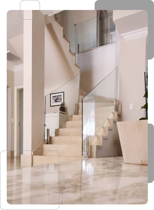 Aplicação de mármores e granitos nobres em pisos, paredes e ambientes com acabamento impecável.